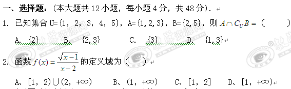 陕西省勉县一中10-11学年高一上学期期中考试(数学)