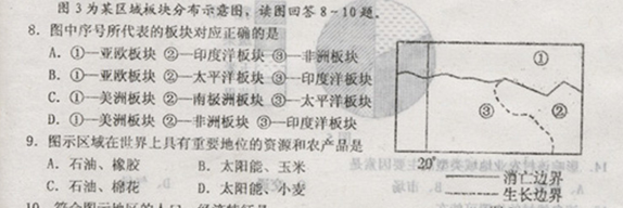 河北省魏县第一中学2011届高三上学期期中考试(地理)扫描版