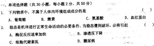 安徽省泗县双语中学10-11学年高二上学期期中考试(生物)扫描版