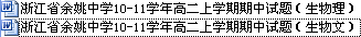 [打包下载]浙江省余姚中学10-11学年高二上学期期中试题(生物文理卷)