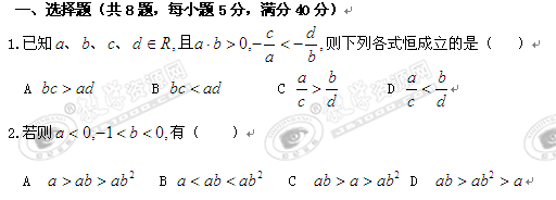 数学:第三章《不等式》单元测试题(新人教B版必修5)