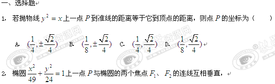 数学:第2章《圆锥曲线》提高训练C组(新人教B版选修1-1)
