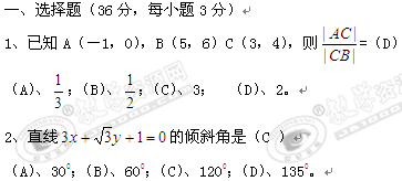 数学:第3章《直线与方程》测试题2(新人教A版必修2)