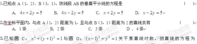 数学:第4章《直线与圆》单元测试(新人教A版必修2)