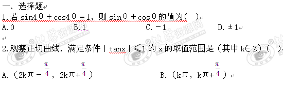 数学:第1章《三角函数》测试题3(新人教A版必修4)