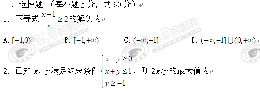 河南省鹿邑三高10-11学年高二上学期期中复习数学试题(不等式)