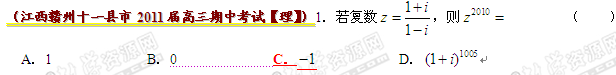 全国各地市重点名校2011届高三上学期期中考试精选38套分类汇编-----复数