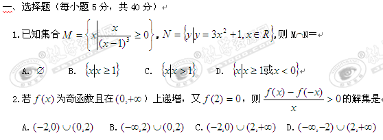 广东省汕头金山中学2011届高三上学期期末考试(数学理)