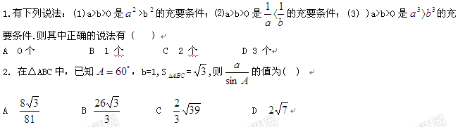 河北省黄骅中学10-11学年高二上学期期中考试(数学)