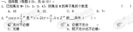山西省霍州一中2011届高三上学期期中考试(数学文)