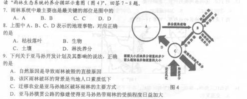 江苏省南京师大附中10-11学年高二上学期期中考试(地理)无答案,扫描版