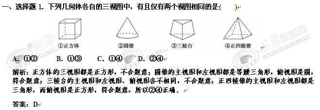 2011届高考数学一轮复习随堂演练:7.1空间几何体的结构、三视图和直观图