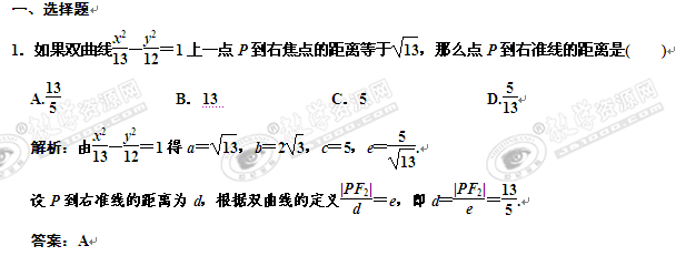 2011届高考数学一轮复习随堂演练:8.7双曲线