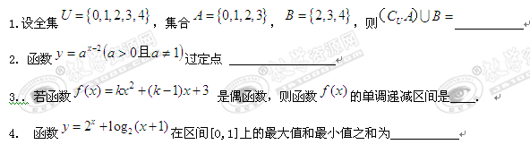 江苏省海安县南莫中学10-11学年高一上学期第三阶段检测(数学)