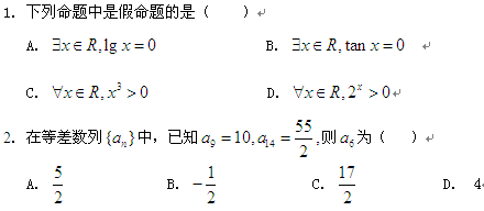 江西省九江一中10-11学年高二上学期第二次月考(数学文)缺答案