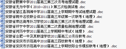 [打包下载]安徽各地2011届高三上学期联考、期中、月考(地理)共10套