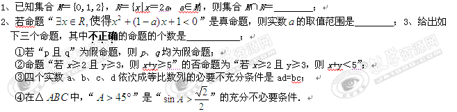 江苏张家港市后塍高中高三上学期期末复习(2)(数学)
