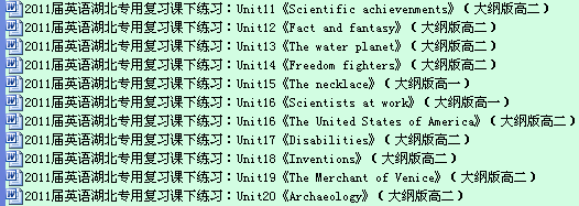 打包下载:2011届英语湖北专用复习课下练习:Unit11-20汇总(大纲版高二)10套