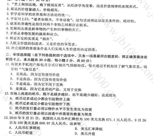 江苏省南通市10-11学年高二上学期期末考试(政治)扫描版缺答案