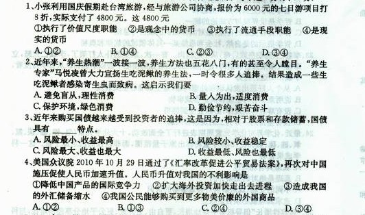 山东省济宁一中2011届高三上学期教学质量监测(政治)扫描版