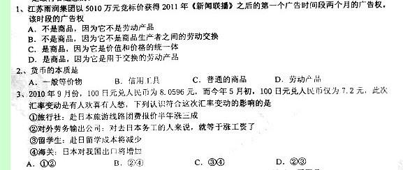 江苏省盱眙中学10-11学年高一上学期期末考试(政治)扫描版