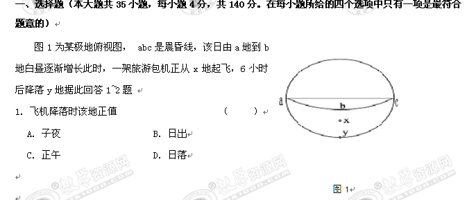 湖南省宁乡一中2010届高三4月高考模拟文综试题(文综)(36题缺图10)