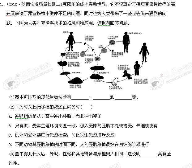 2011届高考生物二轮考点突破复习第一部分专题九 第二讲 胚胎工程、生物技术的安全性和伦理问题、生态工程