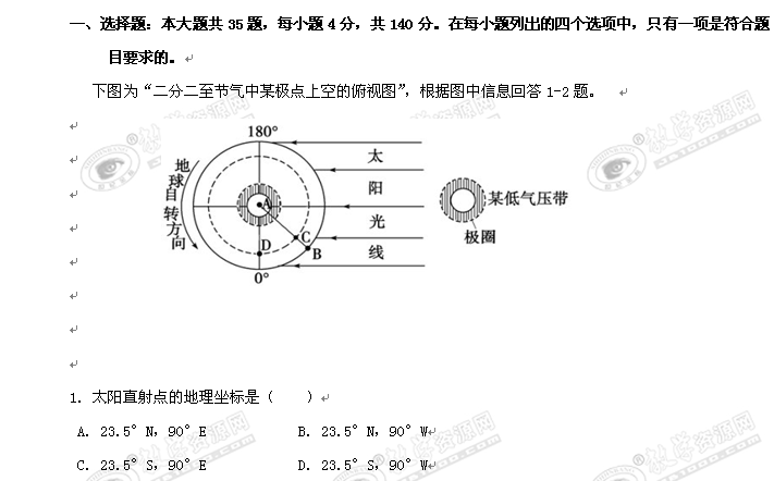 2010-2011学年第二学期东华高中高三文科综合 周测(1)(文综)
