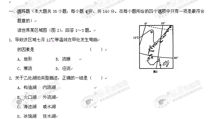 广东省高州市长坡中学2011届高三下学期期初考试试题(文综)(缺历史、政治答案)
