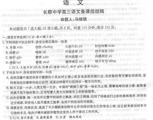 湖南省长郡中学2011届高三月考(语文)(扫描版无答案)