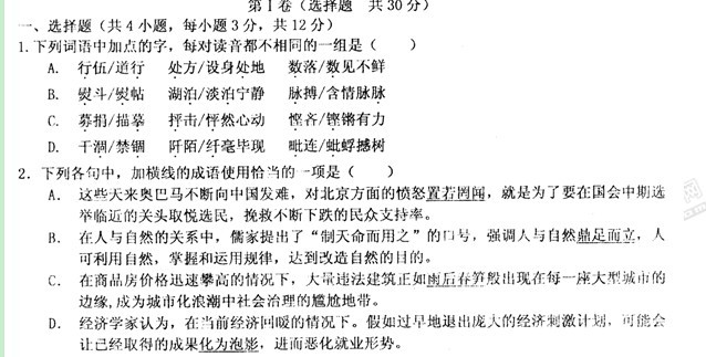 甘肃省庄浪县2011届高三第一次模拟试题(语文)扫描版