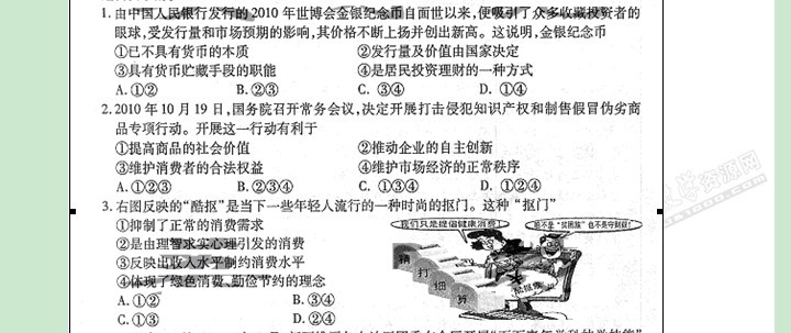 新疆乌鲁木齐市2011届高三第一次诊断性测验(政治)扫描版