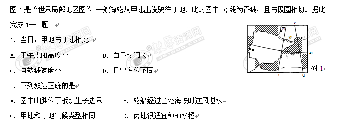 太原五中高一2022年月考文综试题