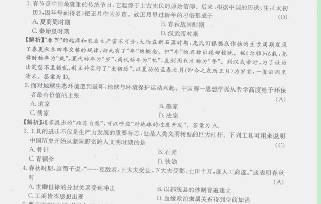 湖南省长沙市一中2011届高三第八次月考扫描版(历史)
