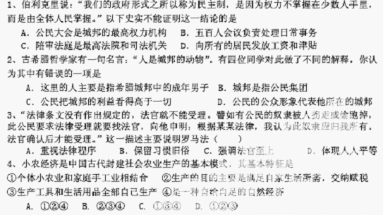 安徽省蚌埠二中10-11学年度高二下学期期中考试(历史)扫描版