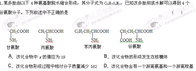世纪金榜2011年高考生物原创预测题:专题一 细胞的分子组成、结构和生命历程(新课标)