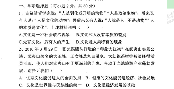 吉林省吉林市普通高中10-11学年高二下学期期中考试试题(政治)(扫描版)