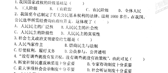 吉林省吉林市普通高中10-11学年高一下学期期中考试试题(政治理)(扫描版)
