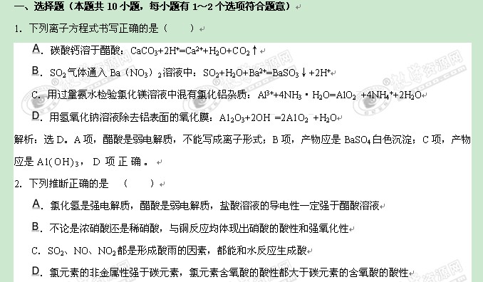 世纪金榜2011年高考化学原创预测题:专题三 无机元素化合物