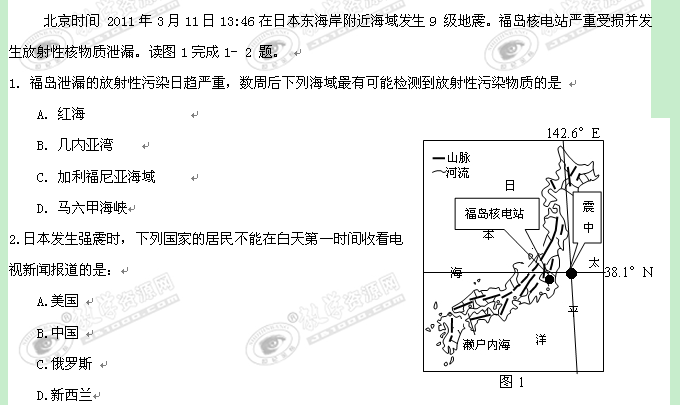 甘肃省嘉峪关市一中2011届高三七模考试(文综)