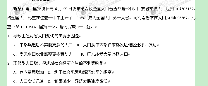 辽宁省沈阳二中2011届高三第四次模拟考试(文综)