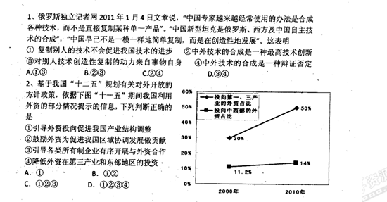 天津市耀华中学2011届高三内部第一次模拟考试(政治)扫描版