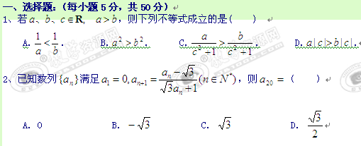 广东省番禺区石碁三中10-11学年高二学业水平测试(数学必修5)B卷