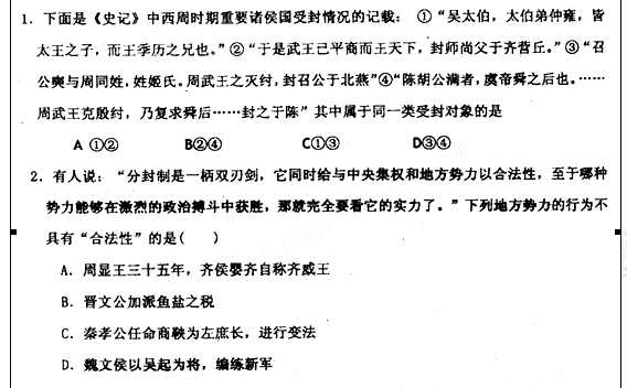 山东省泰山市新泰一中2011-2012学年高一单元测试试题(历史)扫描版