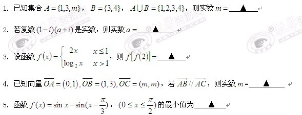 江苏省高邮第一中学2012届高三期中模拟试卷(数学)