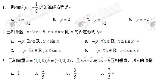 广东省深圳市高级中学11-12学年高二上学期期中测试(数学理)