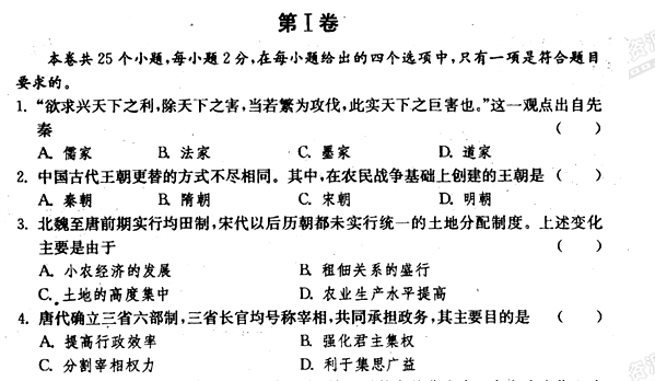 陕西省渭南市希望高级中学2012届高三上学期期中考试(历史)扫描版无答案