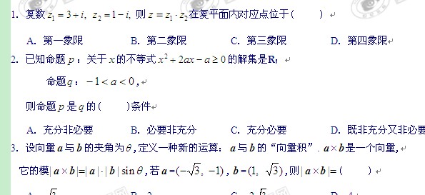 浙江省杭州市2012届高三上学期第一次高考科目教学质量检测(数学文)缺答案
