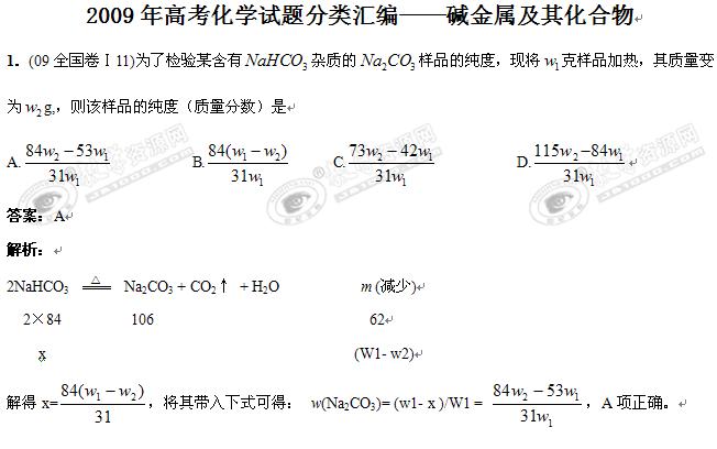 2009年全国高考化学试题分类汇编——碱金属及其化合物