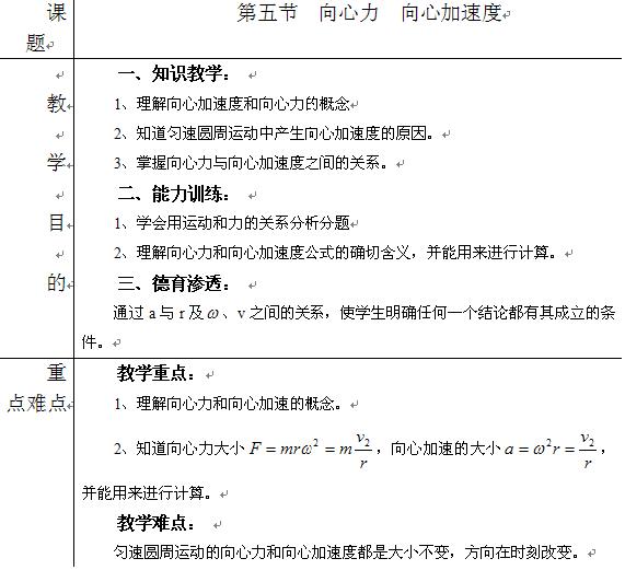 物理:5.5向心力 向心加速度(大纲版必修1)